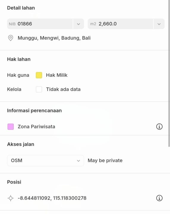 Tanah harga ekonomis dijual di Munggu, Badung, LT 2660m², lokasi strategis. Harga spesial 412 Juta.