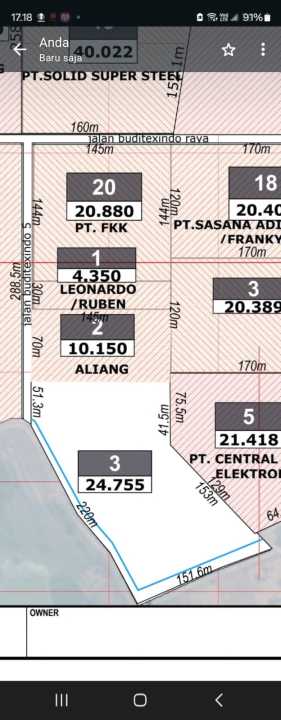 Tanah luxury di lokasi strategis Cikande, Serang. LT 24755m², harga eksklusif 612 Triliun. Lokasi premium, dekat pusat bisnis dan perbelanjaan.