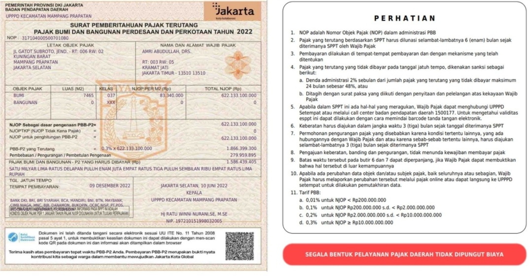 Harga njop = 89,5juta permtr