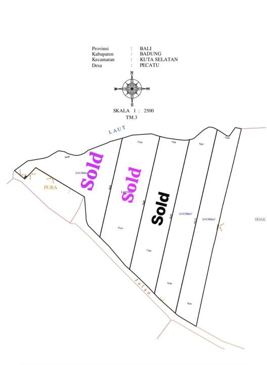Tanah harga ekonomis dijual di Pecatu, Badung, LT 3000m², lokasi strategis. Harga spesial 360 Juta.