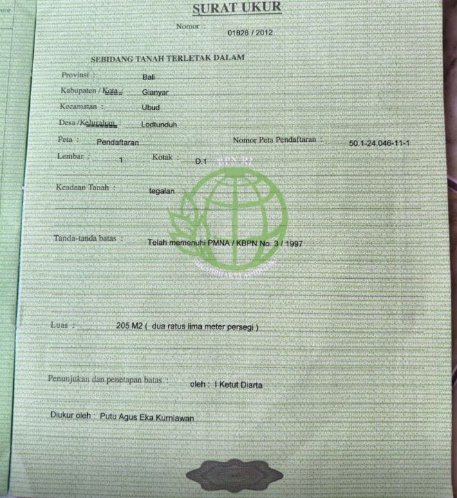 Tanah luxury di lokasi strategis Ubud, Gianyar. LT 205m², harga eksklusif 246 Miliar. Lokasi premium, dekat pusat bisnis dan perbelanjaan.