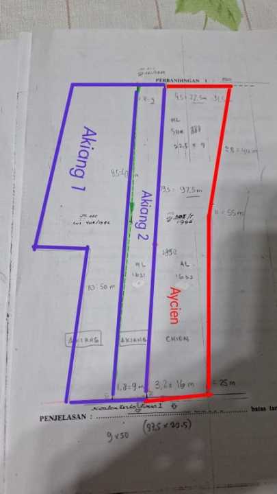 ( Lebar Depan +- 34m2 , Lebar Belakang +- 53.5m2 )