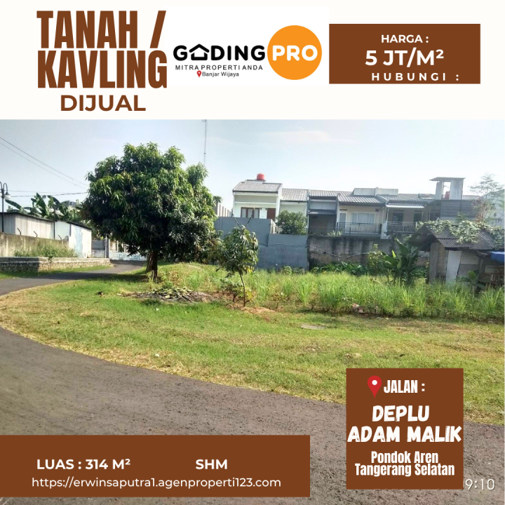 Tanah dijual, di wilayah Deplu Adam Malik, pondok aren pondok karya.