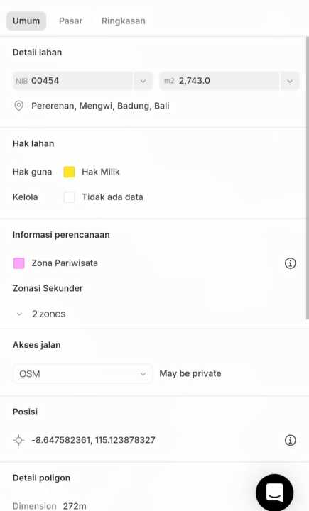 Harga 2,5 milyar per are.