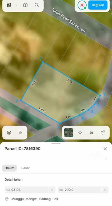 Jual tanah sederhana di Munggu, Badung, LT 200m², harga murah 14,5 Juta. Cocok untuk rumah tinggal.