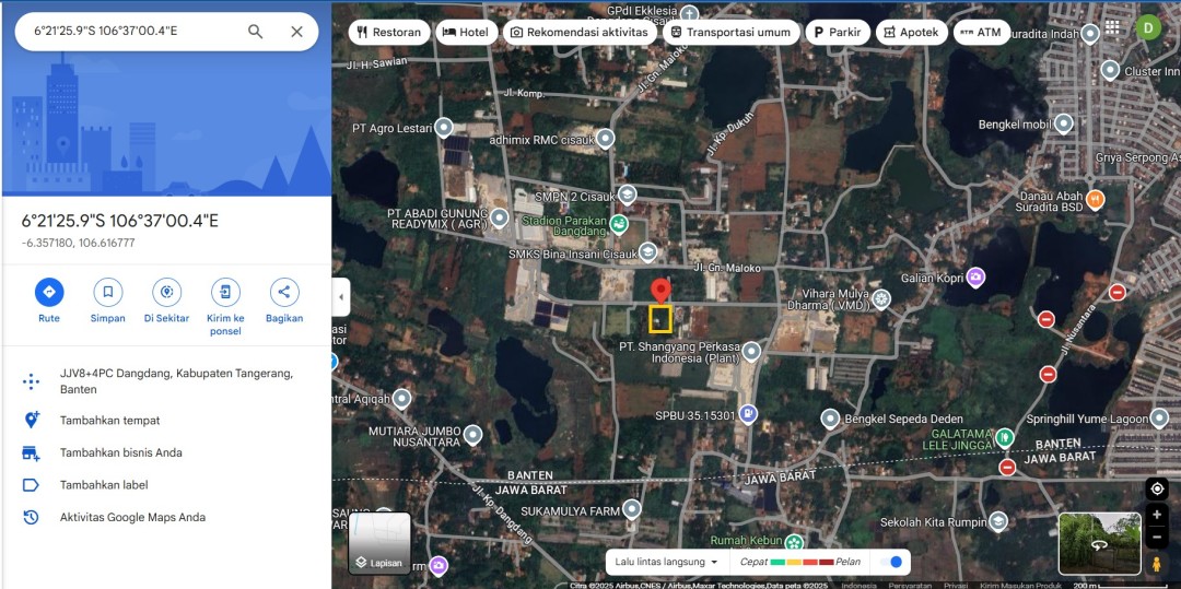 Dijual tanah eksklusif di kawasan elit Cisauk, Tangerang. Luas tanah 6135m², harga premium 10,4 Miliar. Cocok untuk hunian mewah atau investasi prestisius.