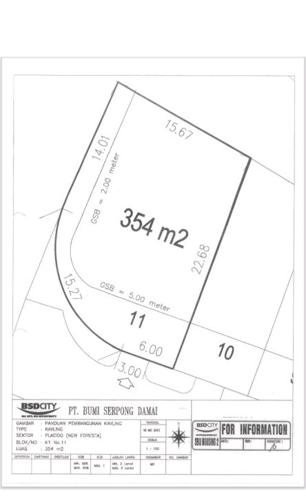 Luas tanah : 354m ( 10jt/m)