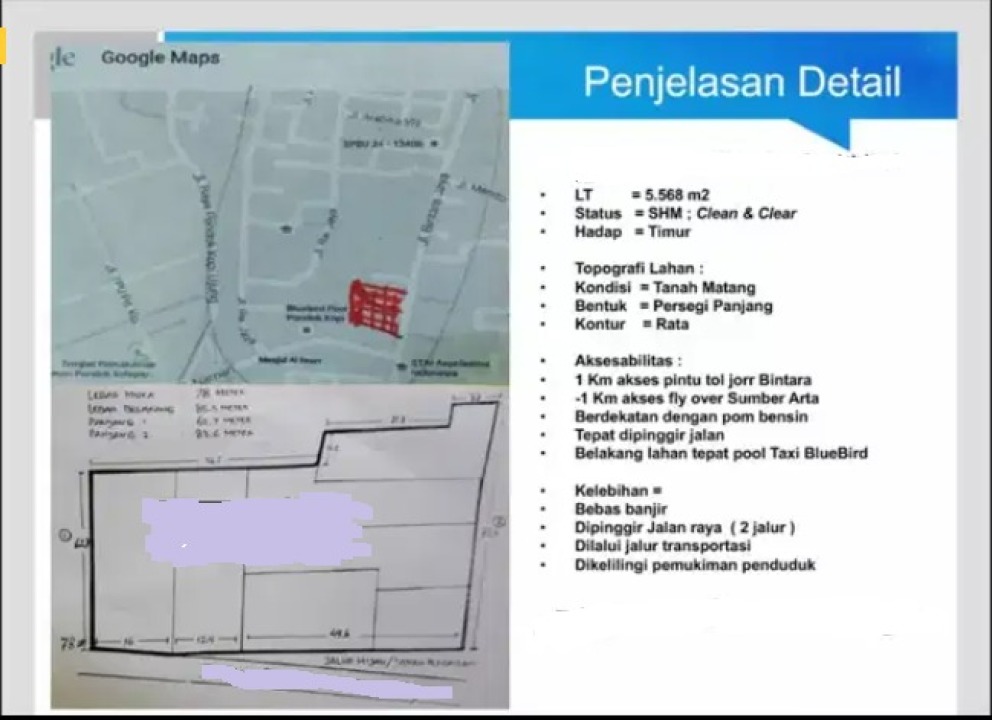 - Luas Tanah : 5.568 m²