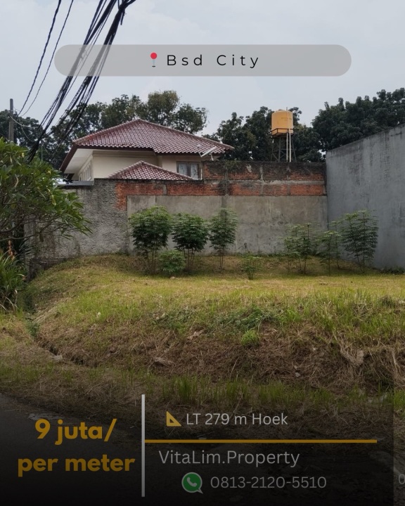 Tanah Kavling Hoek Griya Loka - Bsd Luas 279 Meter Lokasi Strategis Dekat Jalan Raya Dan Pos Satpam / Portal Masuk Komplek