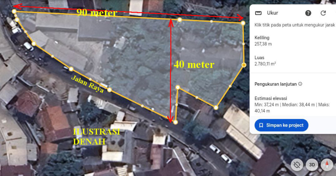 - Luas Tanah : 2780 m2 (bentuk Trapesium)
