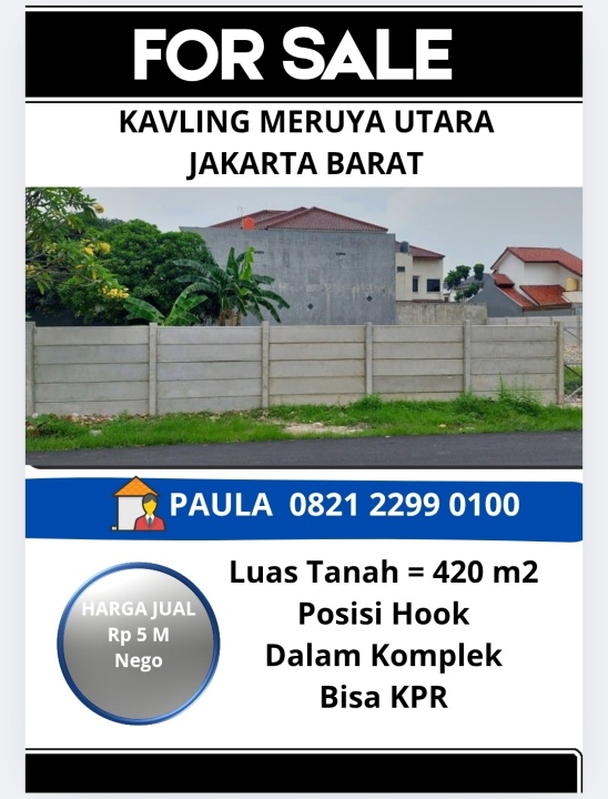 Dijual Tanah di Meruya Jakarta Barat Rp 5.5 M Nego Tanah di Meruya SHM 420.0 M²