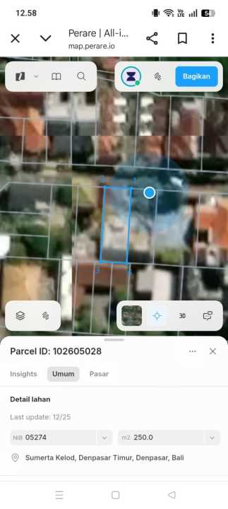 Investasi tanah murah di lokasi berkembang Renon, Denpasar, luas 250m². Harga hanya 33,7 Juta.