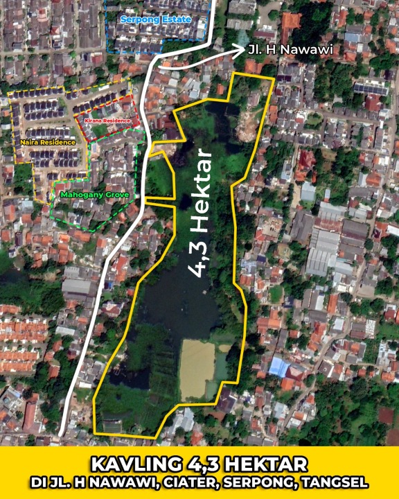 Dijual tanah eksklusif di kawasan elit Ciater, Tangerang. Luas tanah 43000m², harga premium 215 Miliar. Cocok untuk hunian mewah atau investasi prestisius.