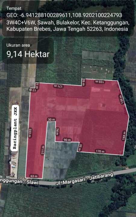 Dijual Tanah/Lahan 9Ha Bulakelor Brebes Jateng (Jl. Propinsi)