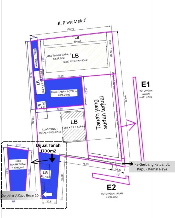 - Luas tanah :1700m2
