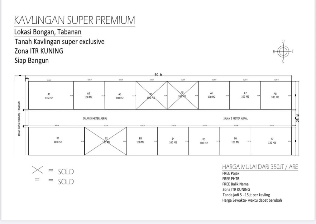 Jual tanah minimalis di Tabanan, Tabanan, LT 100m², harga murah 360 Juta. Cocok untuk rumah tinggal.