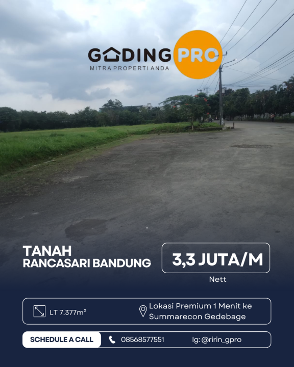 Dijual tanah eksklusif di kawasan elit Rancasari, Bandung. Luas tanah 7377m², harga premium 24,3 Miliar. Cocok untuk hunian mewah atau investasi prestisius.