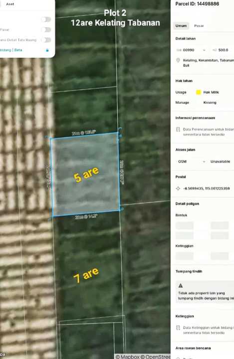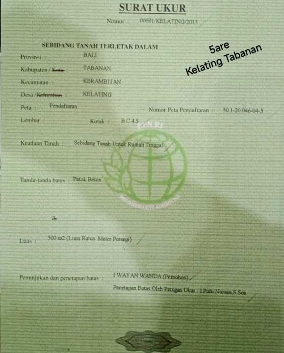 Dijual tanah eksklusif di kawasan elit Tabanan, Tabanan. Luas tanah 1200m², harga premium 3 Miliar. Cocok untuk hunian mewah atau investasi prestisius.