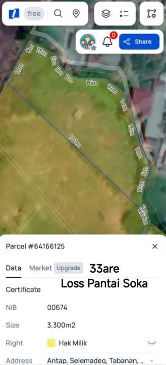 Tanah luxury di lokasi strategis Tabanan, Tabanan. LT 3300m², harga eksklusif 21,4 Miliar. Lokasi premium, dekat pusat bisnis dan perbelanjaan.