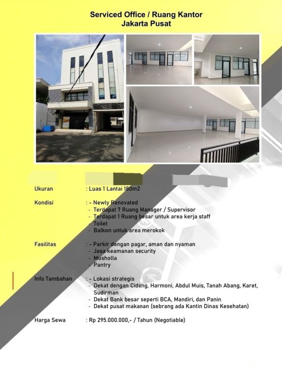 Harga Sewa : Mulai dari Rp 3.000.000,- / Bulan