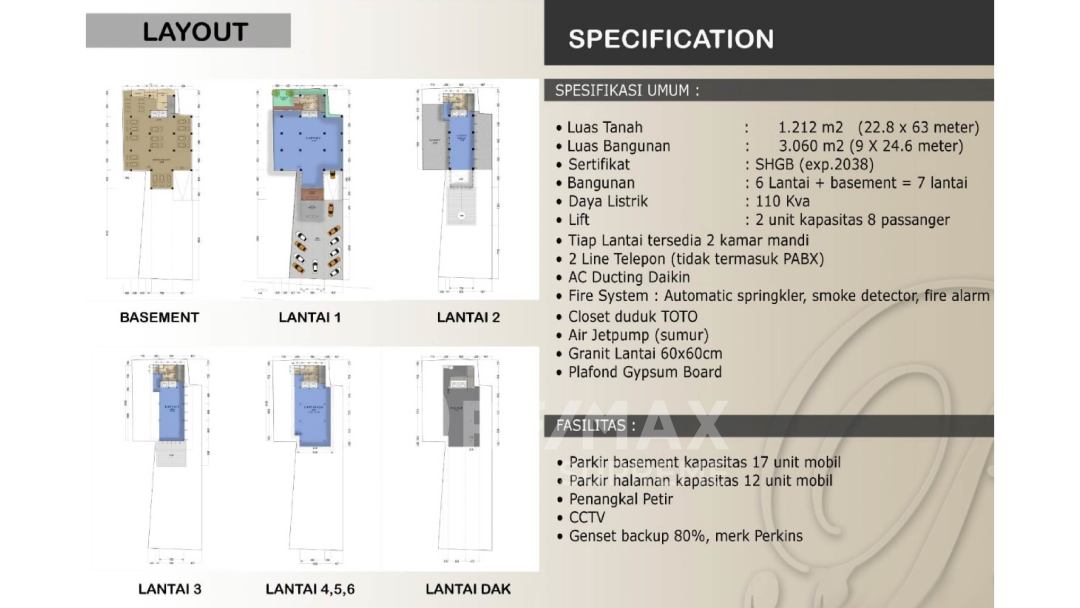 Bangunan: 6 Lantai + basement = 7 lantai