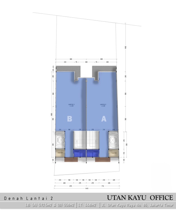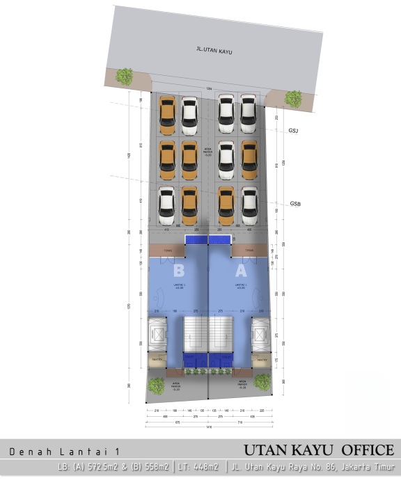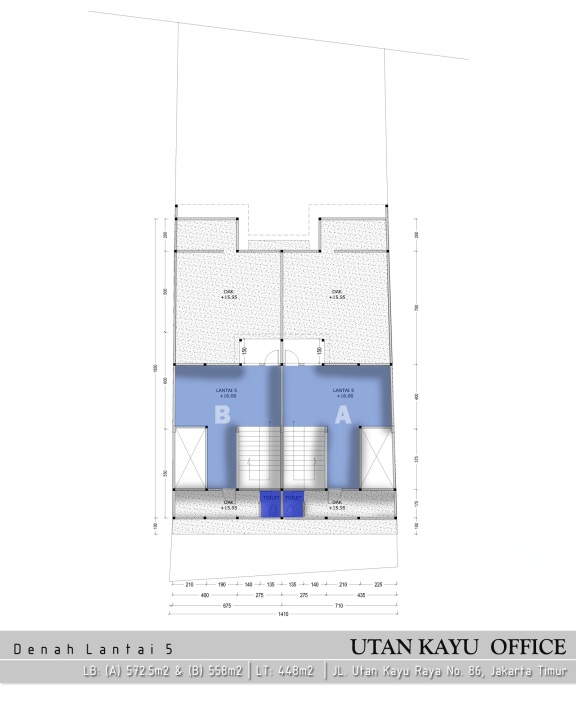 Gedung Baru Utan Kayu 4 Lantai @220m² hadap Utara