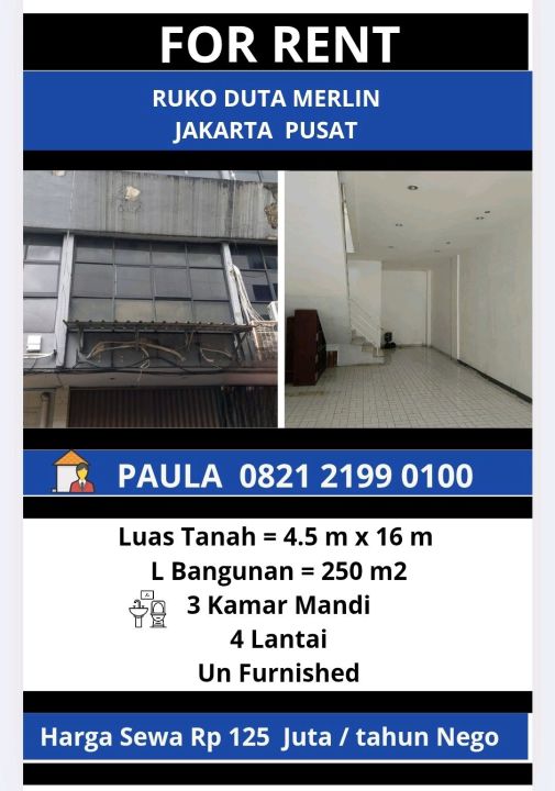 Disewakan Ruko Duta Merlin Jakarta Pusat