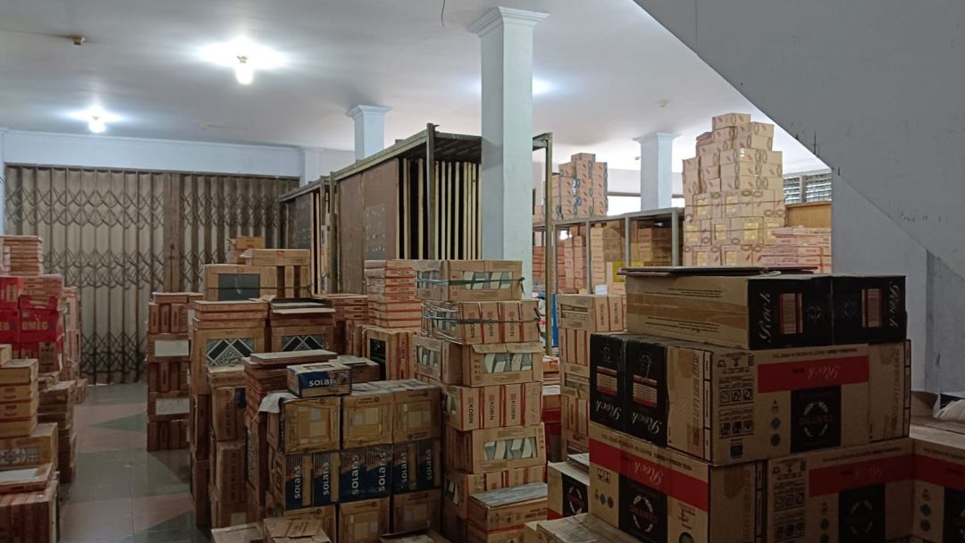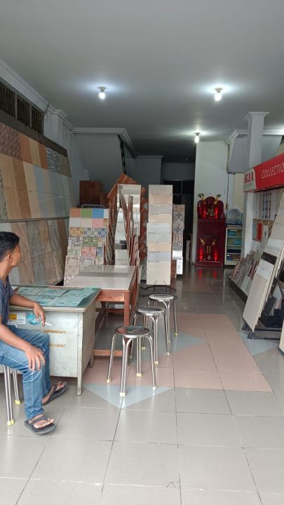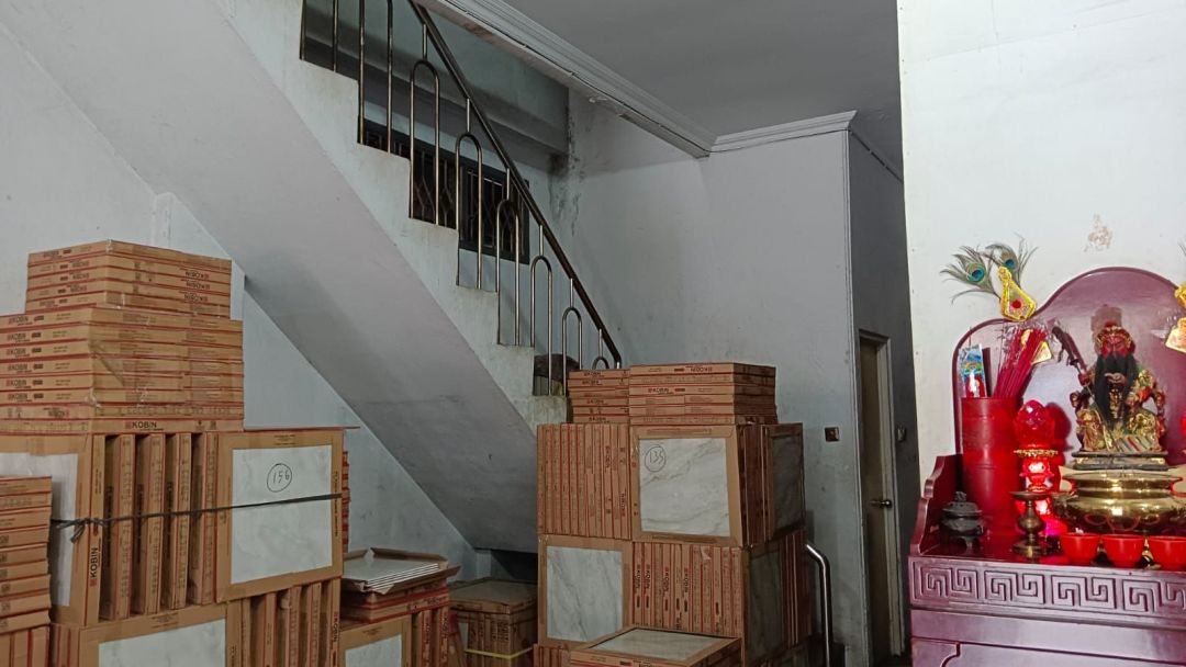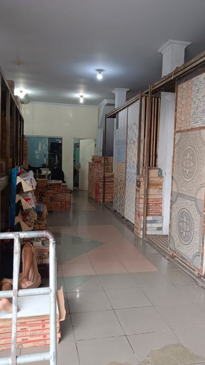 Depan ruko ada gudang struktur baja.