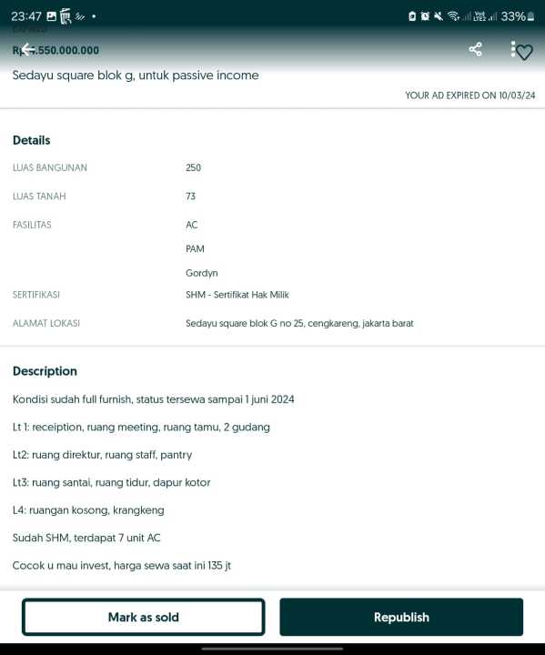 - Cocok untuk mau invest harga sewa saat ini 135jt