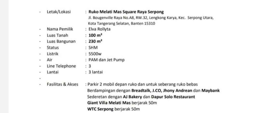 Ruko Trategis di pinggir jalan Raya serpong Tiga lantai sebelah Jco,Aj bakery,Toko baju Muslim, Hypermarket,hotel piducia, WTC serpong sangat cocok untuk cafe,Kantor,Toko dll