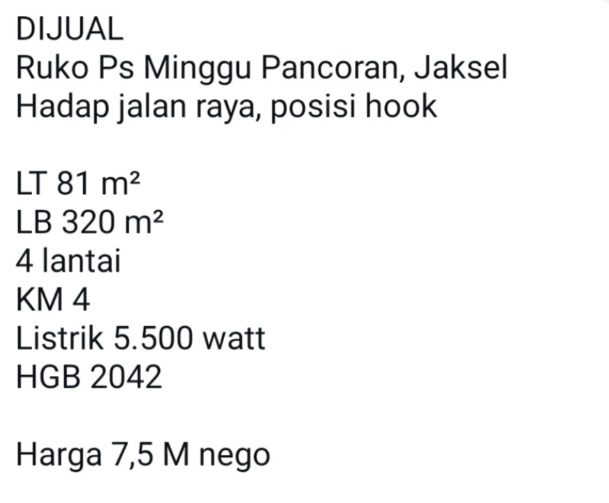 Ruko Ps Minggu Pancoran, Jaksel