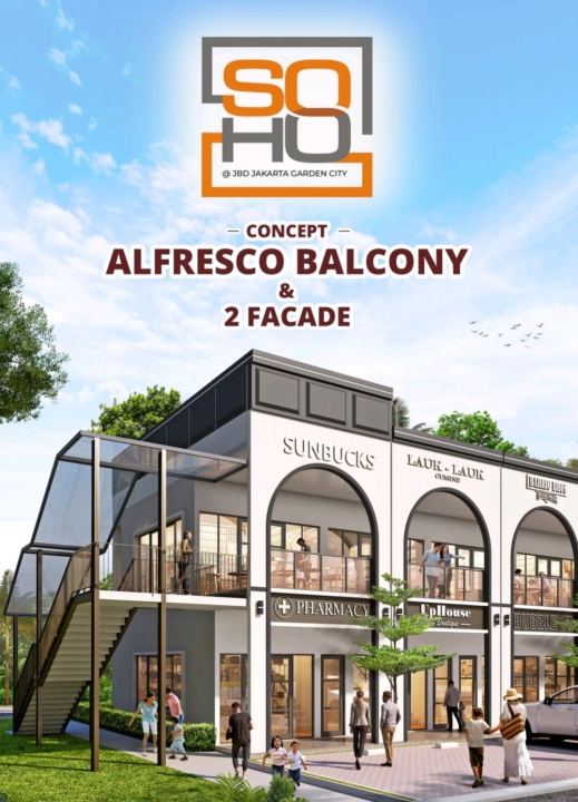 Komersial terbaru di JBD Jakarta Garden City, konsep Alfresco Balcony dengan ukuran 4,5 x 15 m dengan 2 lantai