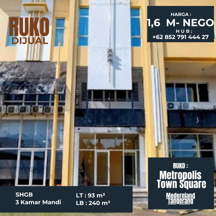 Dijual Ruko Metropolis Town Square Modernland Cikokol Tangerang