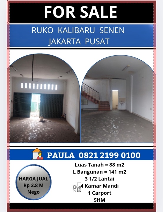 Ruko 3 1/2 Lantai Kalibaru Senen Jakarta Pusat