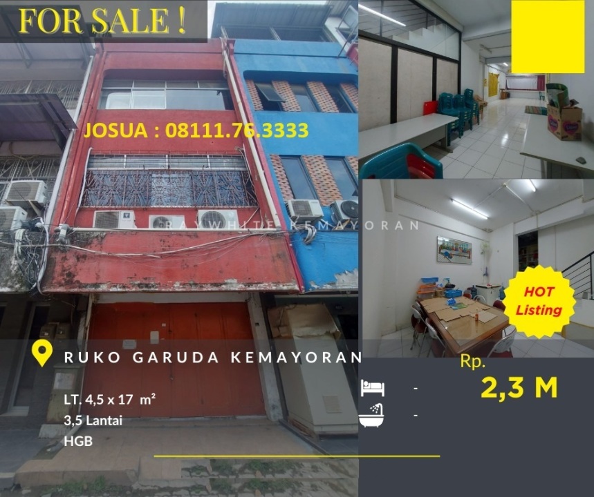 DIJUAL CEPAT MURAH, TURUN HARGA DR 3 M KE RP 2.3 M Ruko Jl. Garuda, Kemayoran Jakarta Pusat: