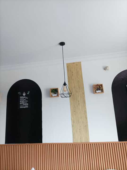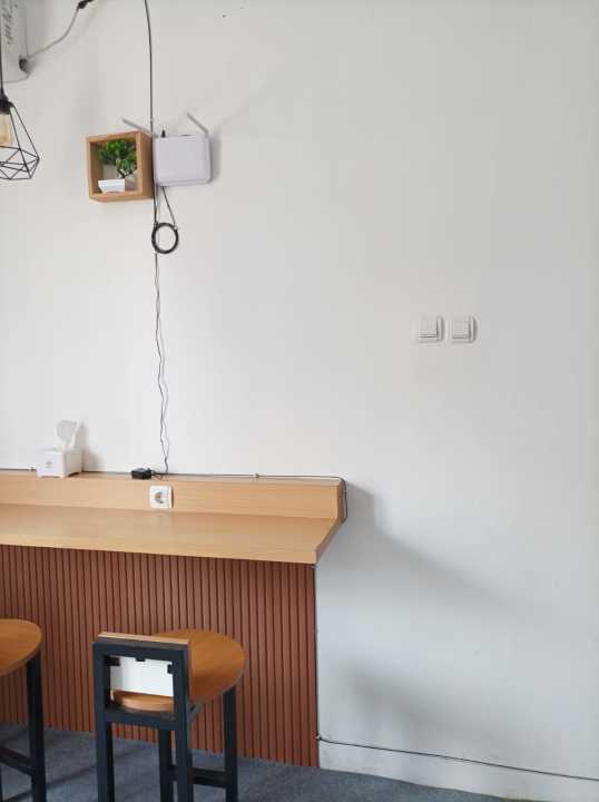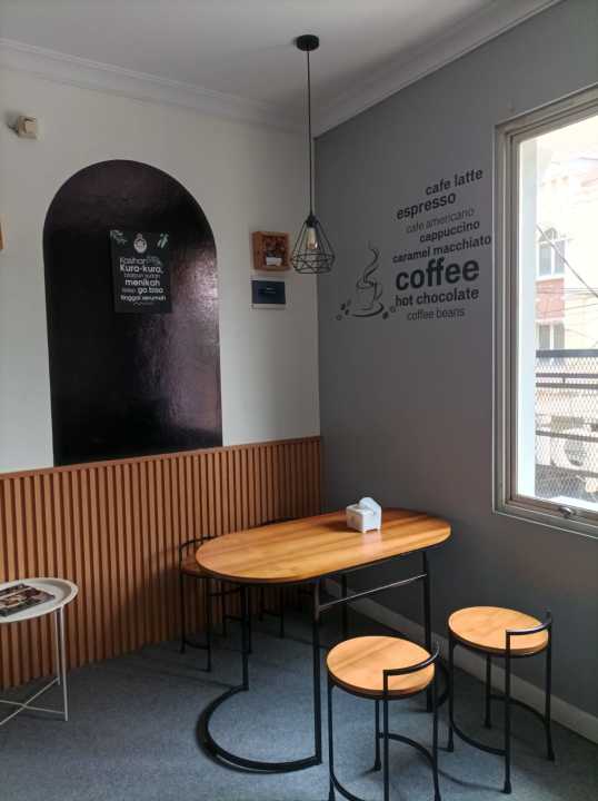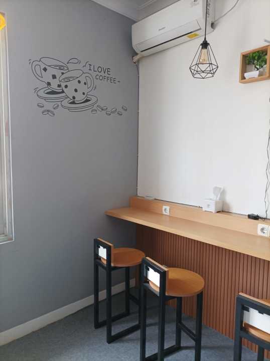 Kursi dan meja siap buka cafe dan sudah ada pelanggan.