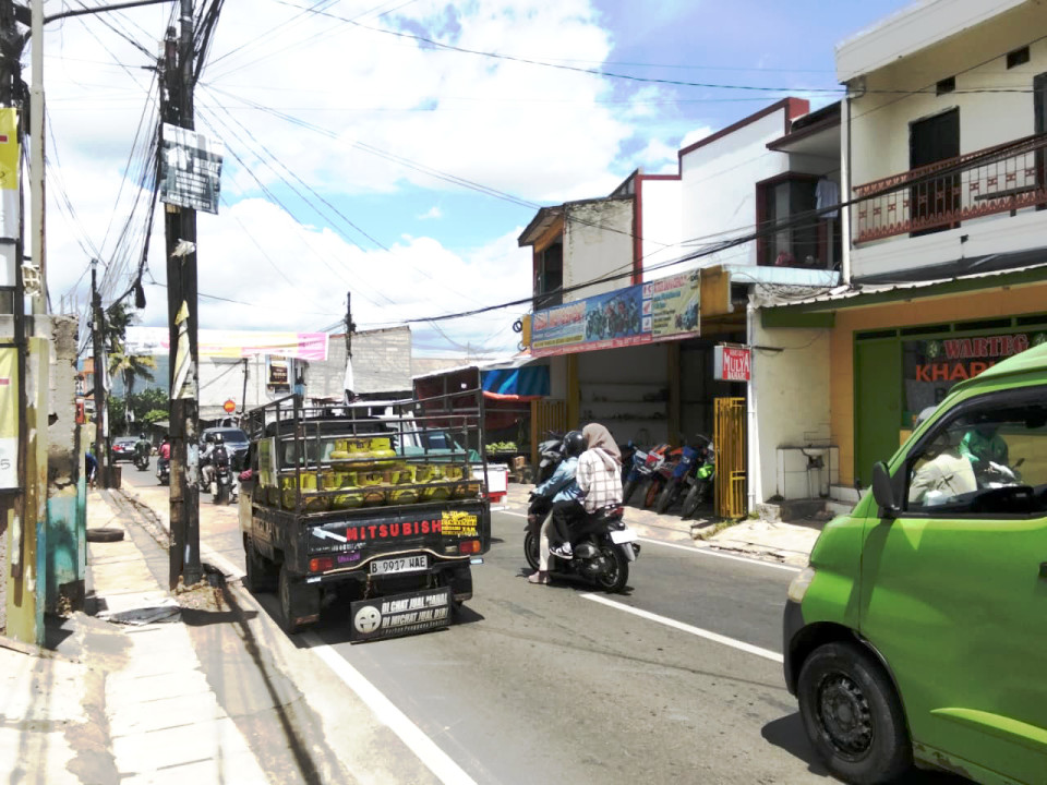 Ruko 3 lantai ini berada di jalan raya yang ramai lalulintasnya.