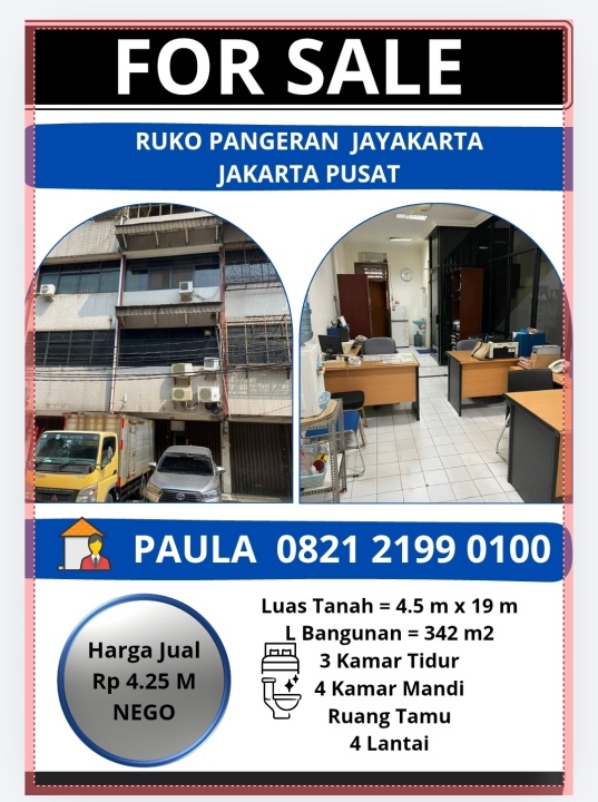 Ruko Strategis 4 Lantai di Pangeran Jayakarta, Jakarta Pusat