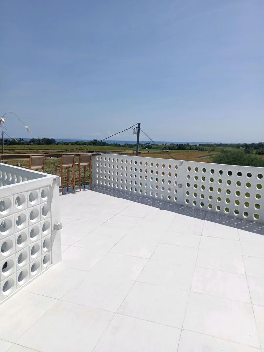 View sawah, gunung, laut