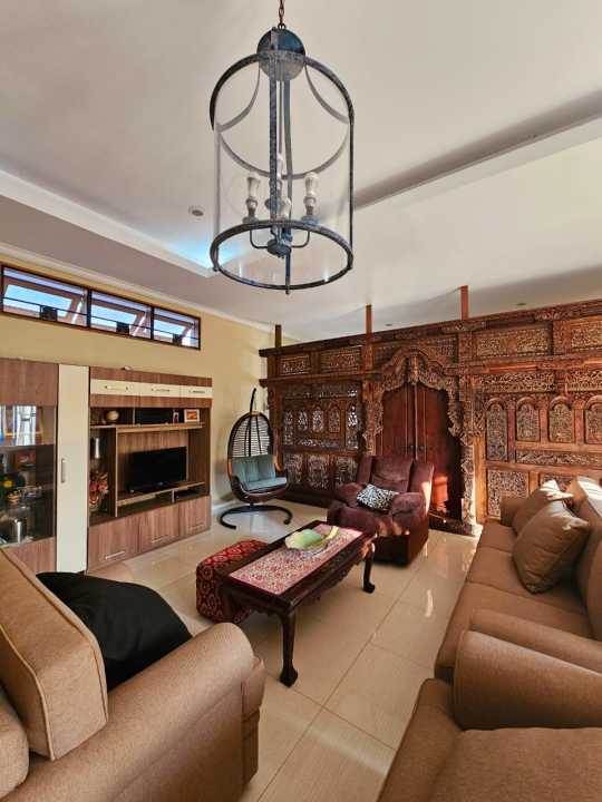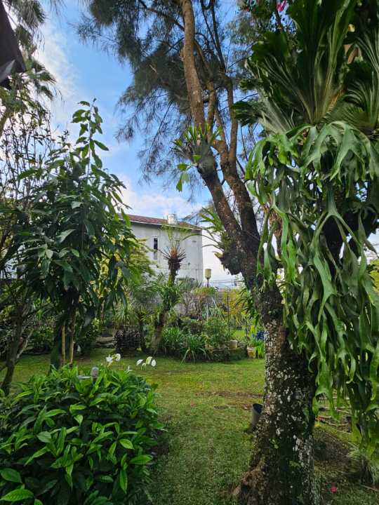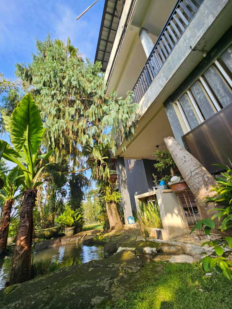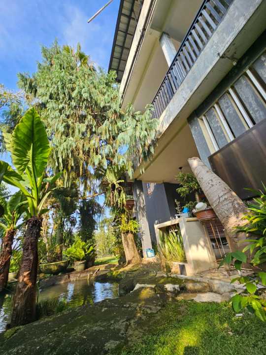 ada kolam ikan , luas sekali halaman nya banyak tanaman dan asri, sejuk dan bersih