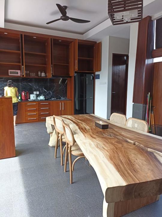 - 1 unit Meja Makan kayu solid dengan 8 kursi