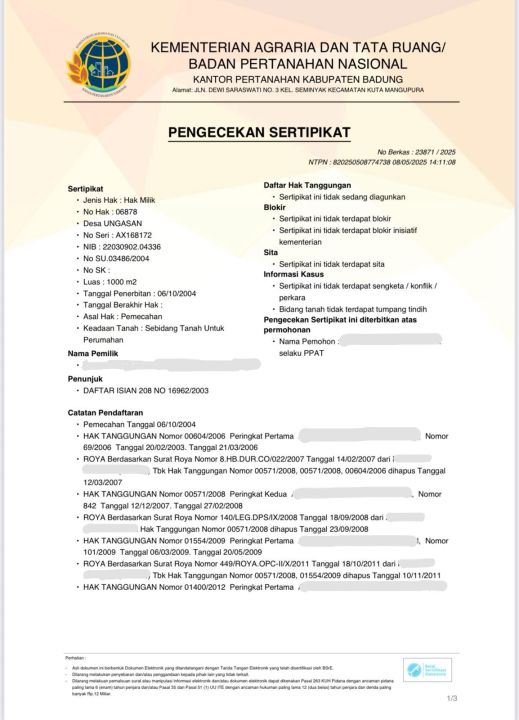 - Sertifikat: SHM - Sertifikat Hak Milik