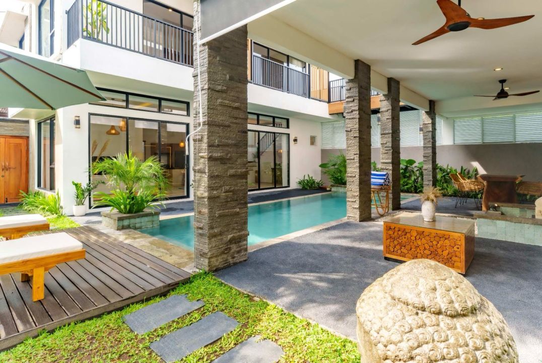 Lingkungan villa, di kelilingi dengan fasilitas umum, supermarket, sekolah, klinik dan jalan kaki ke Finns Recreation Club, Pantai Berawa & Beach Club (FINNS & Atlas)