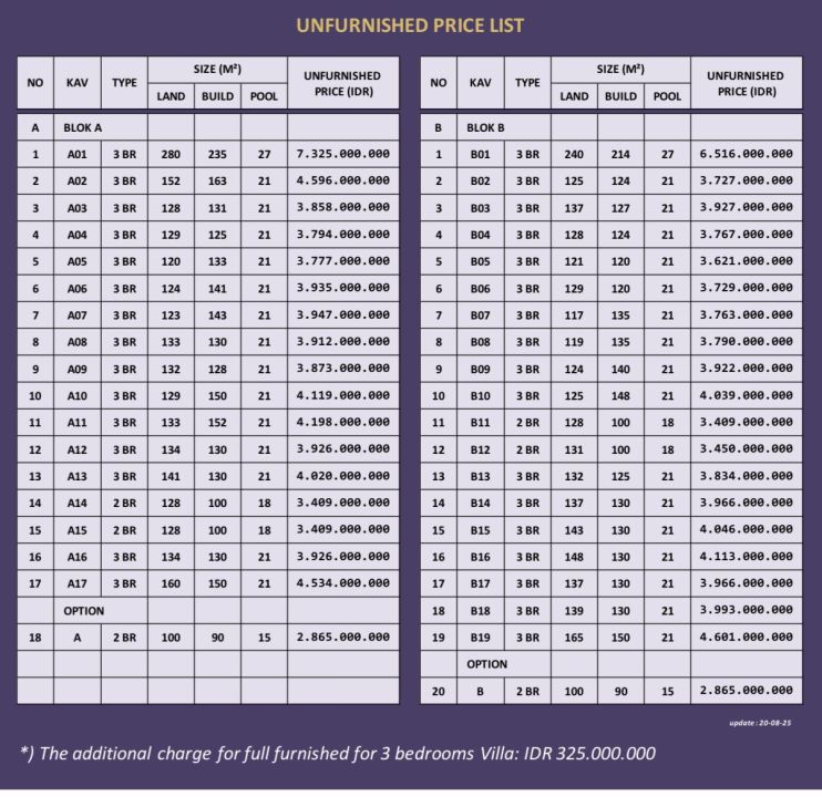 Harga mulai 3.500.000.000 untuk 2 bed room unfurnished