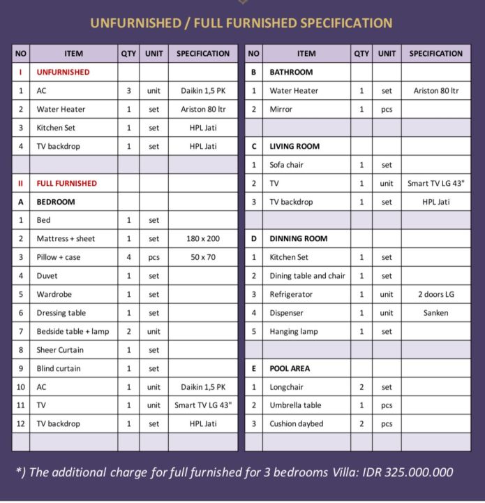 Jika penambahan Funiture IDR : 325000xxxx kamar tidur