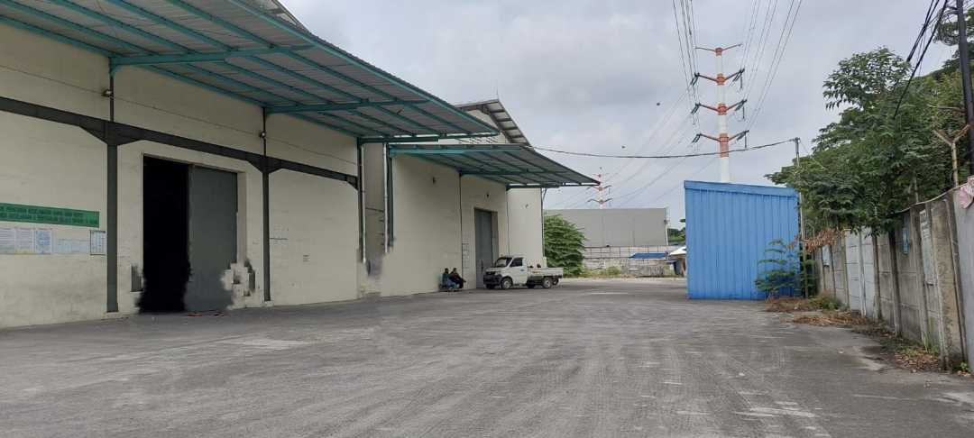 Gudang dengan halaman luas disewakan dengan harga Rp. 45.000 per m2 per bulan dengan minimal sewa 2 tahun dan pembayaran per tahun.
