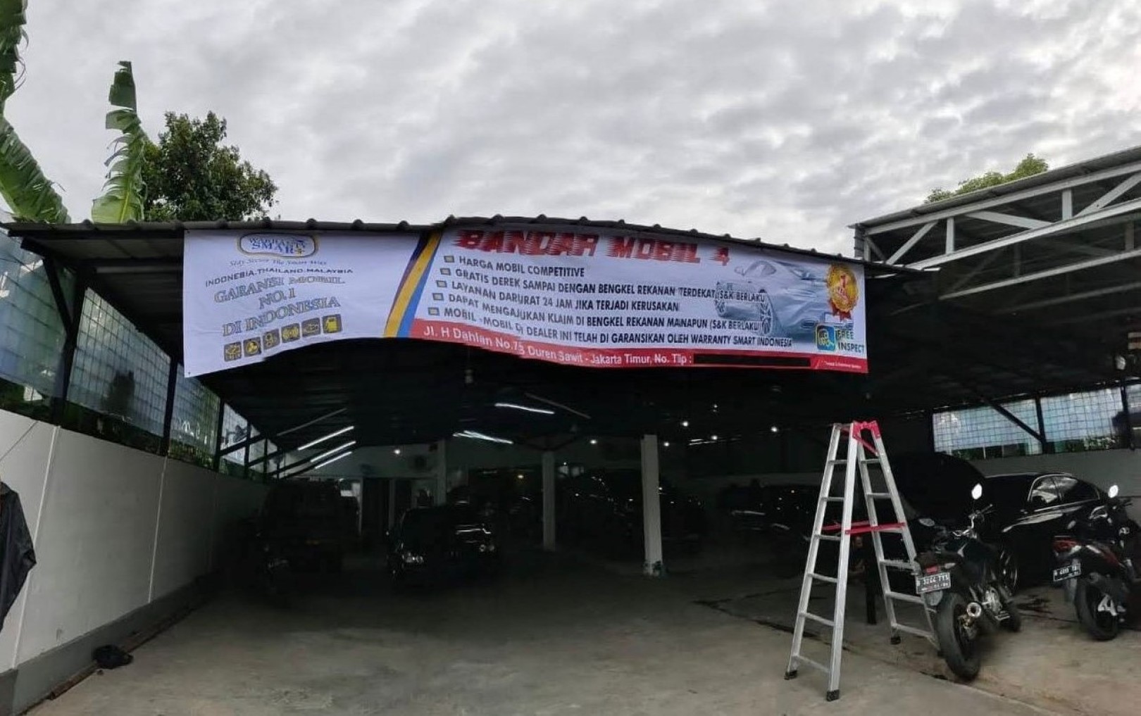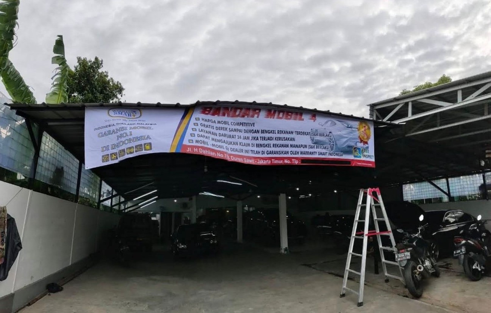 Disewakan Bangunan seperti Gudang, ex showroom mobil second luas 410 m2 Duren sawit jakarta Timur. Dekat jl Raya Kalimalang dan Raden intan
