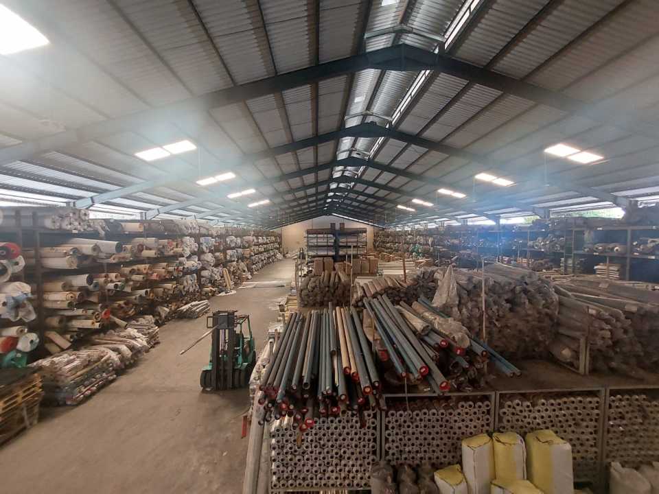- luas tanah 6961 m2, L bangunan 2800 m2 (1 hamparan) + office 400 m2