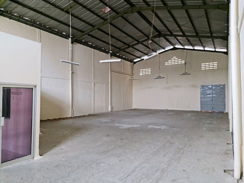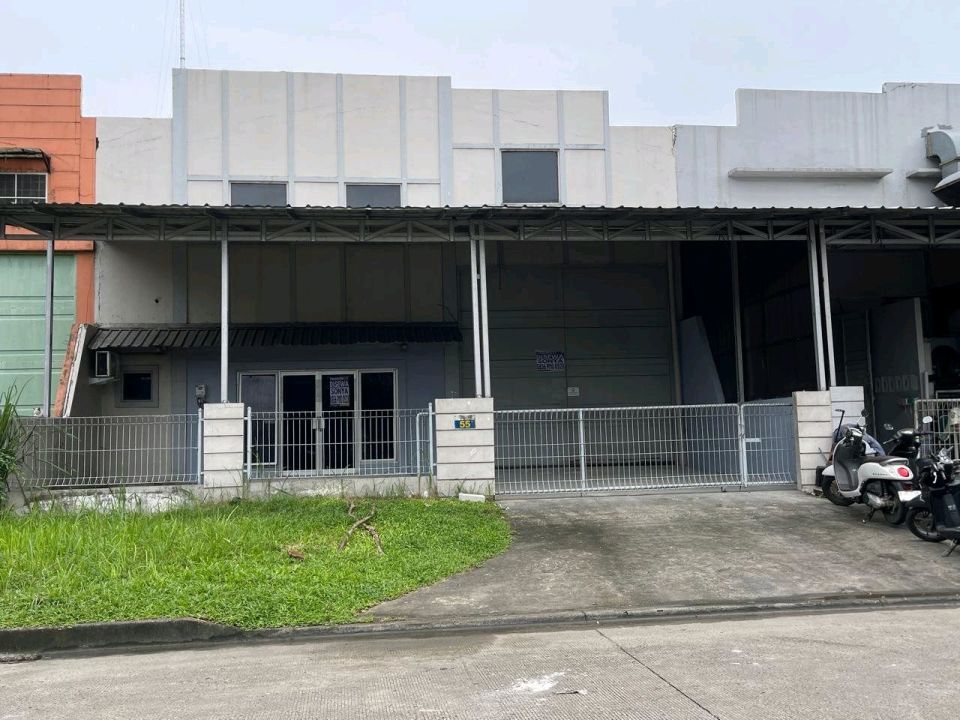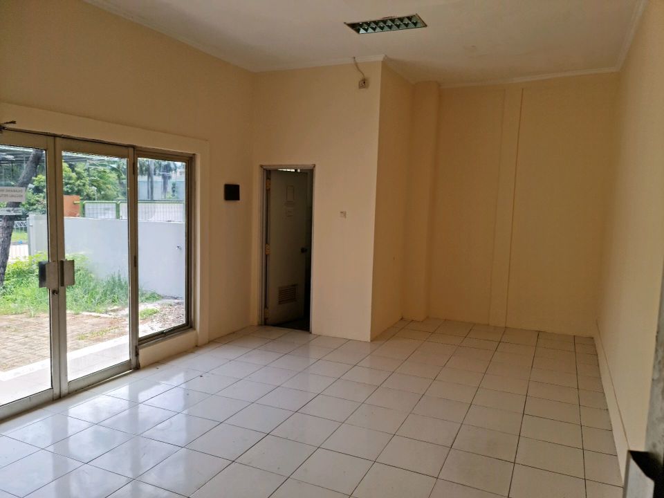 Gudang di pergudangan taman Tekno BSD sudah ada kantor akses pintu kaca terpisah dari pintu untuk loading barang.