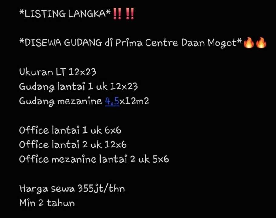 DISEWA GUDANG di Prima Centre Daan Mogot